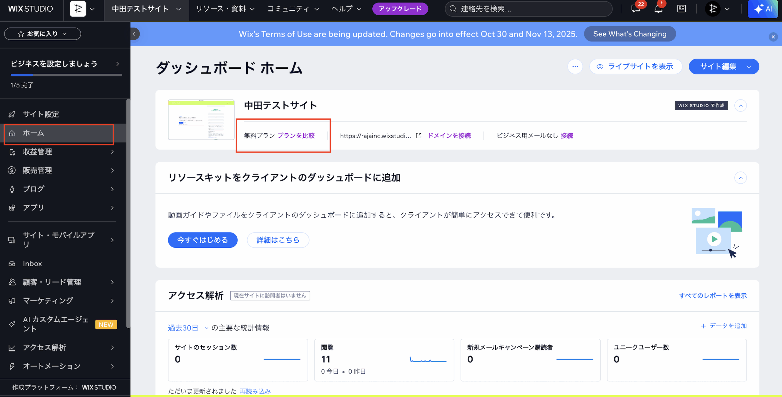 そもそも、Wixは無料プランで作成する事ができますので、ご自身が有料か無料プランかを確認するところから始めてください、無料プランの場合は退会手続きという事は特にないので、そのまま放置いただいても大丈夫です。