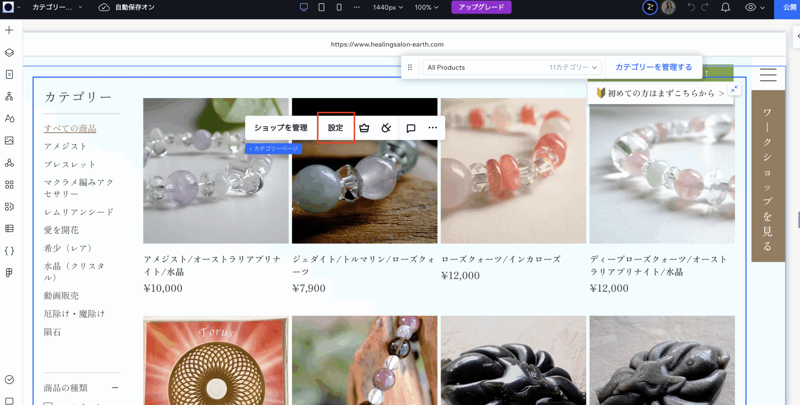 Wix ストアアプリに関わる部分に関しては、設定からデザインやレイアウトを変更できます。