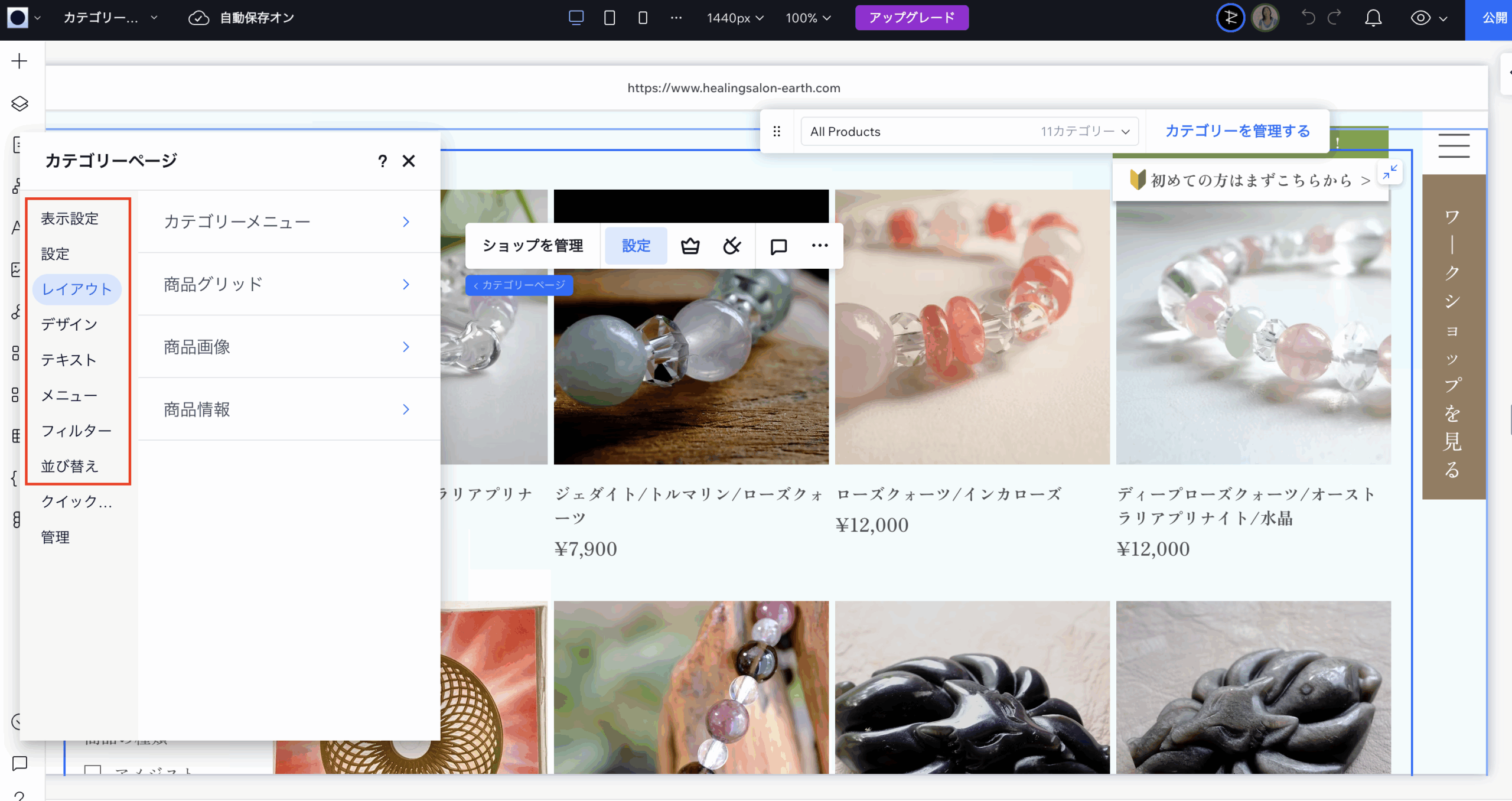 Wix ストアに関わる部分についても、数クリックでレイアウトやデザインを変更することができます。