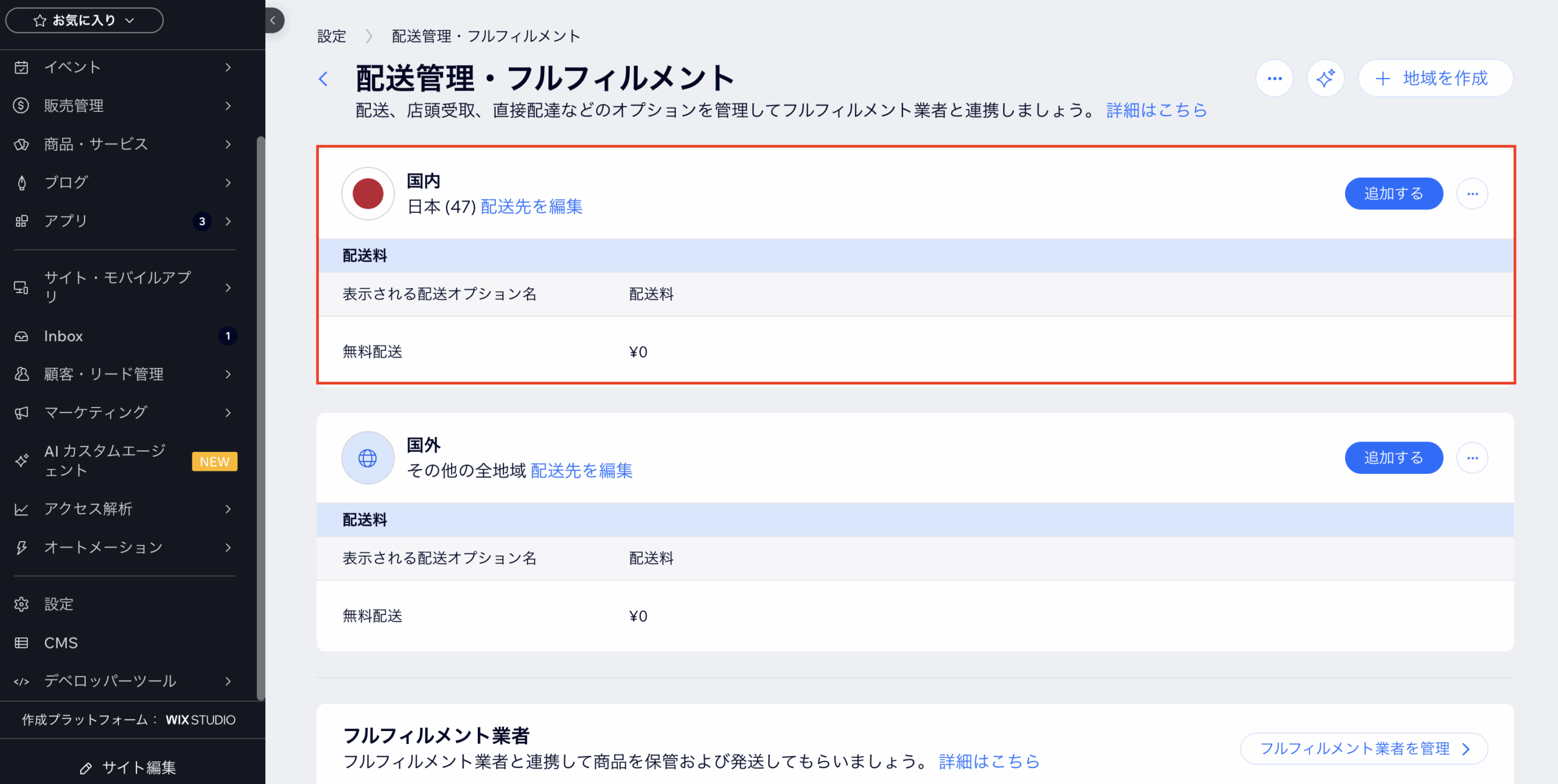 日本だけに配送したり、都道府県ごとに配送料を設定することができます。